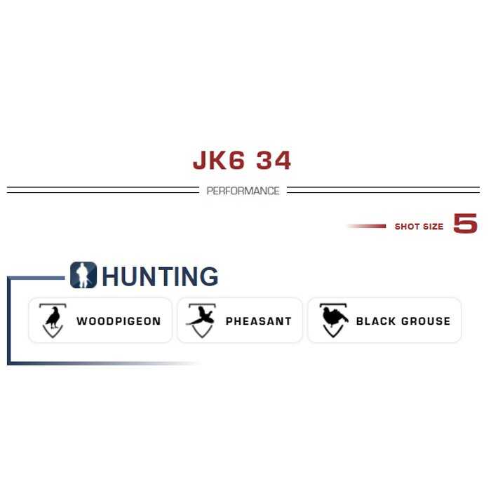 TEKNİK ÖZELLİKLER Ürün Adı : Fiocchi JK6 Kalibre : 12/70/22 Kurşun Ağırlığı : 34 gram Saçma Numarası : 5 Çıkış Hızı : 415 m/s Kapatma Tipi : 6 yapraklı yıldız Renk : Mavi