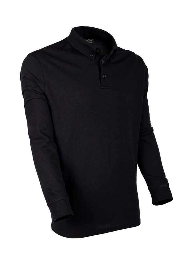 VAV Tlac-02 Polo Yaka Uzun Kollu Tişört Siyah XS